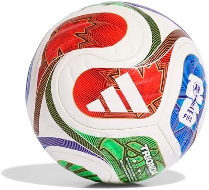 About this item 60% polyurethane, 40% polyester (recycled) Thermally bonded seamless construction Butyl bladder, Requires inflation, FIFA Quality Pro certified FIFA World Cup 26 printed logo Colour: White / Solar Blue / Hi-Res Red / Flash Lime