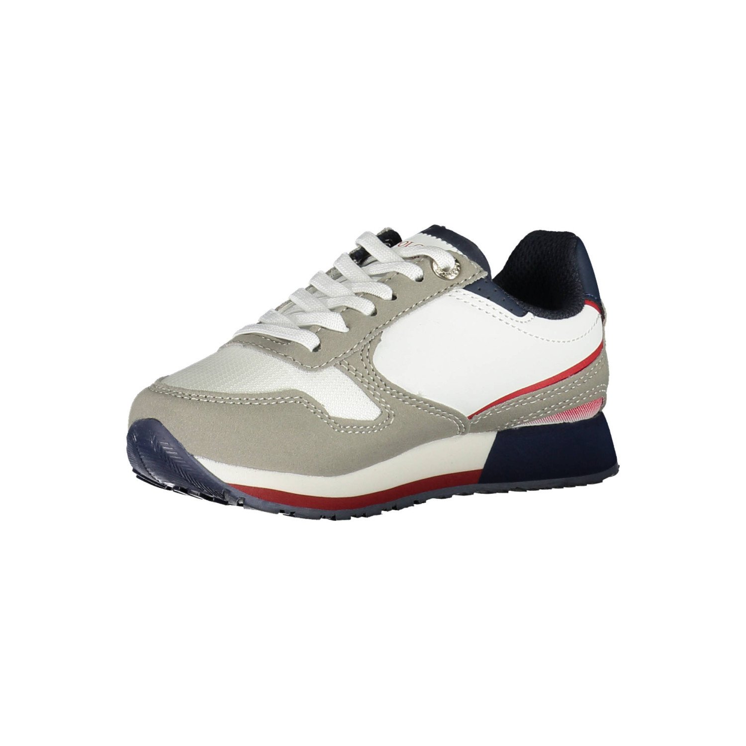 calzatura sportiva con lacci, detalj och kontrast, logotyp