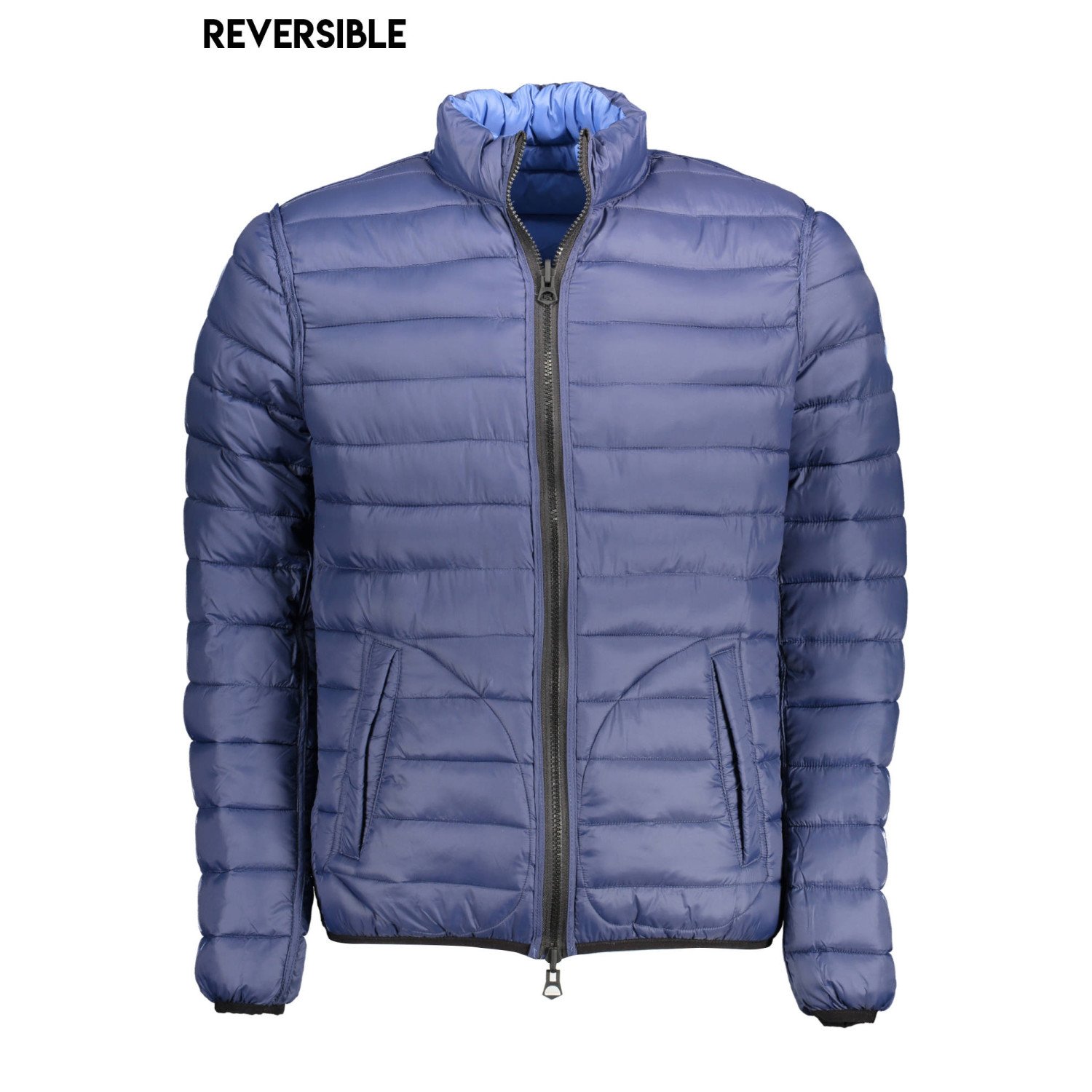 giubbotto reversibile, maniche lunghe, 2 tasche intern, 2 tasche esterne, detaljer a contrasto, applicazione, logo