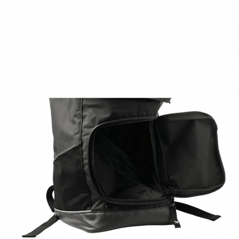 Materialbeskrivning: Blandning av Pro-Tarp och svart polyester med förstärkt foder. Funktioner: Huvudfack med rund dragkedja. Invändig nätficka och vadderad laptopficka. Främre ficka för torra väskor med utvändig åtkomst. DryFlow-ventiler. Två nätfickor för vattenflaskor. Justerbara axelremmar.