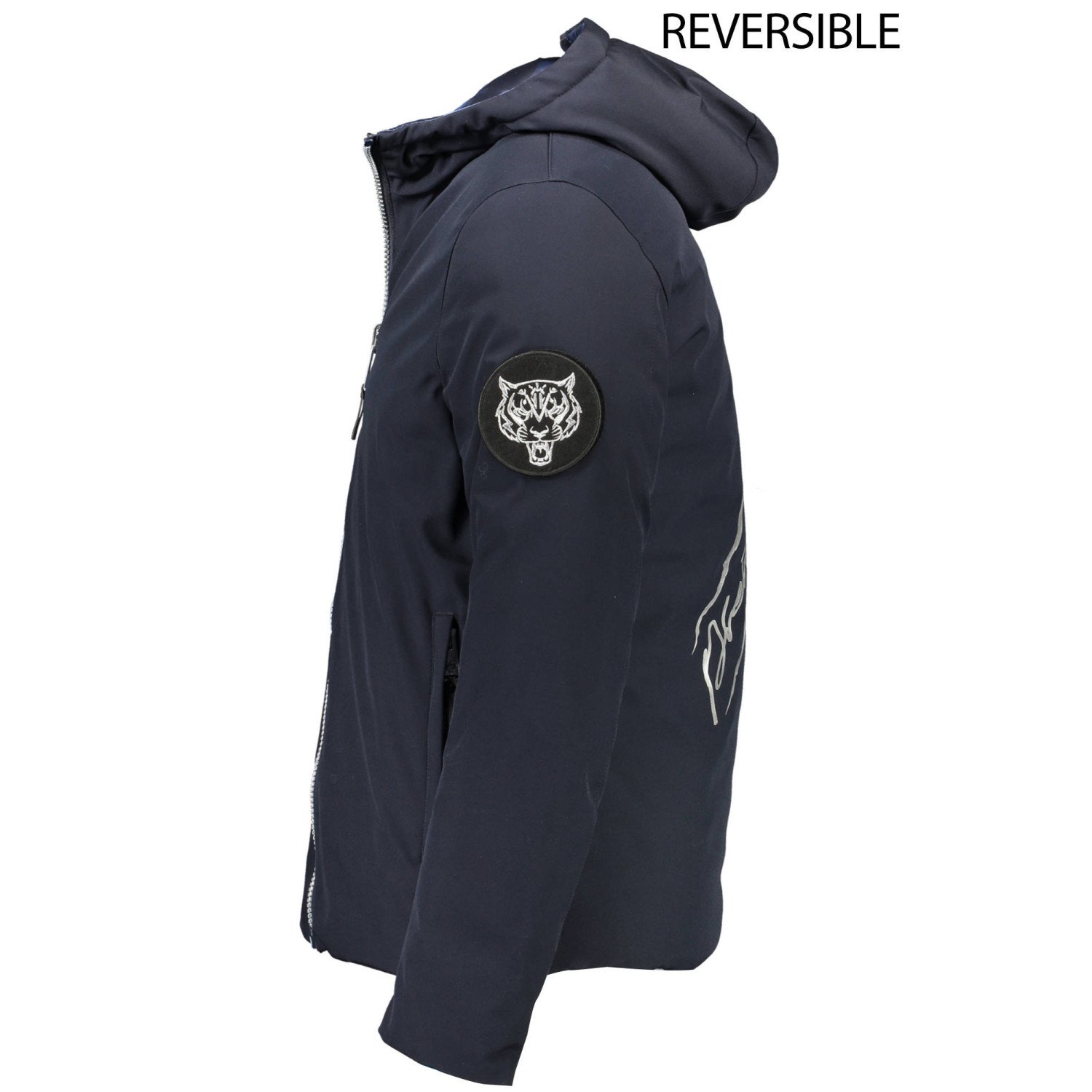 gjubbotto maniche lunghe reversibile, con cappuccio, 2 tasche esterne, 2 tasche interne, zip, stampa, applicazione, logo